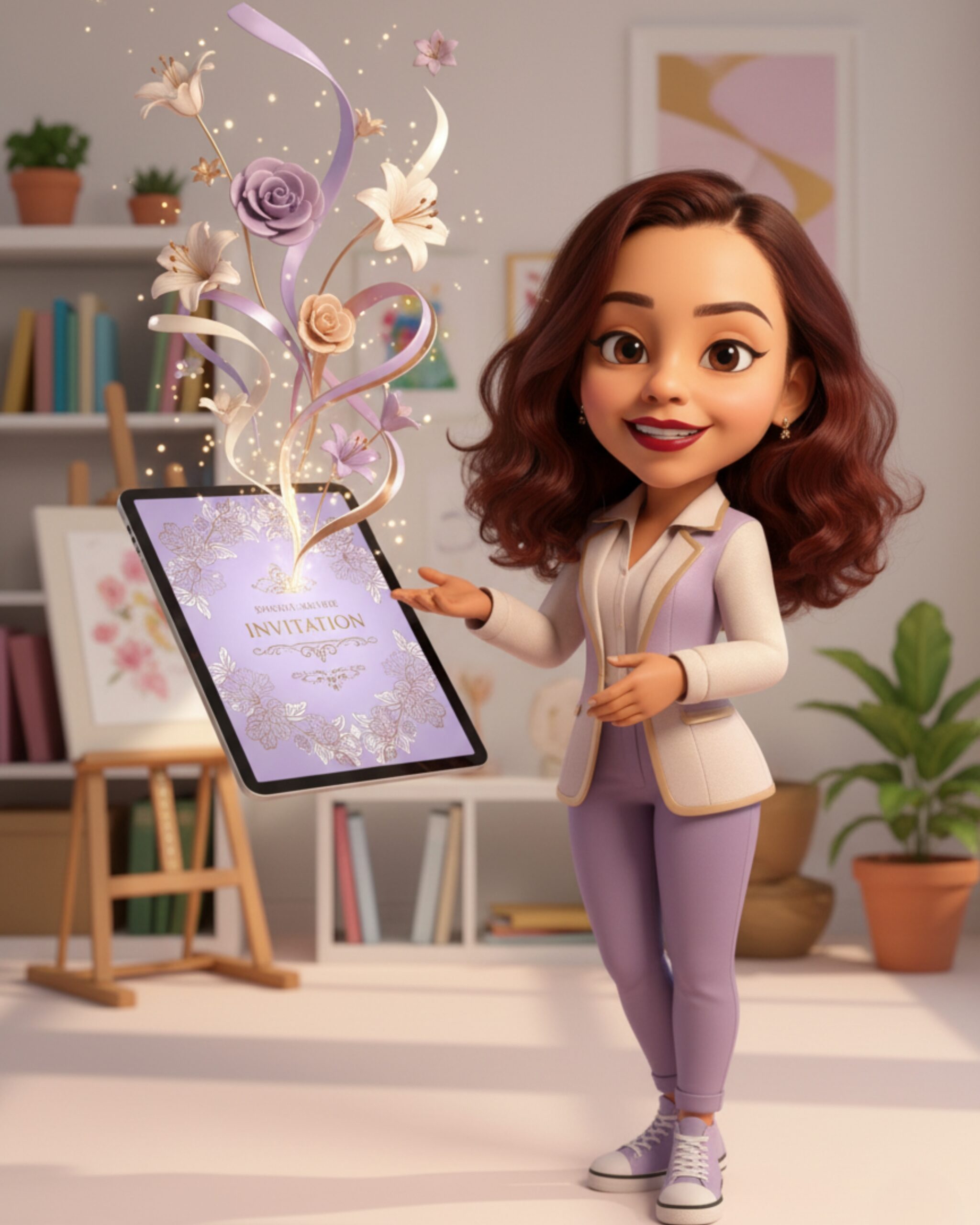 O convite é enviado digitalmente pelo WhatsApp. Você recebe o arquivo pronto para compartilhar, pode ser imagem, PDF interativo ou vídeo, dependendo do modelo escolhido.